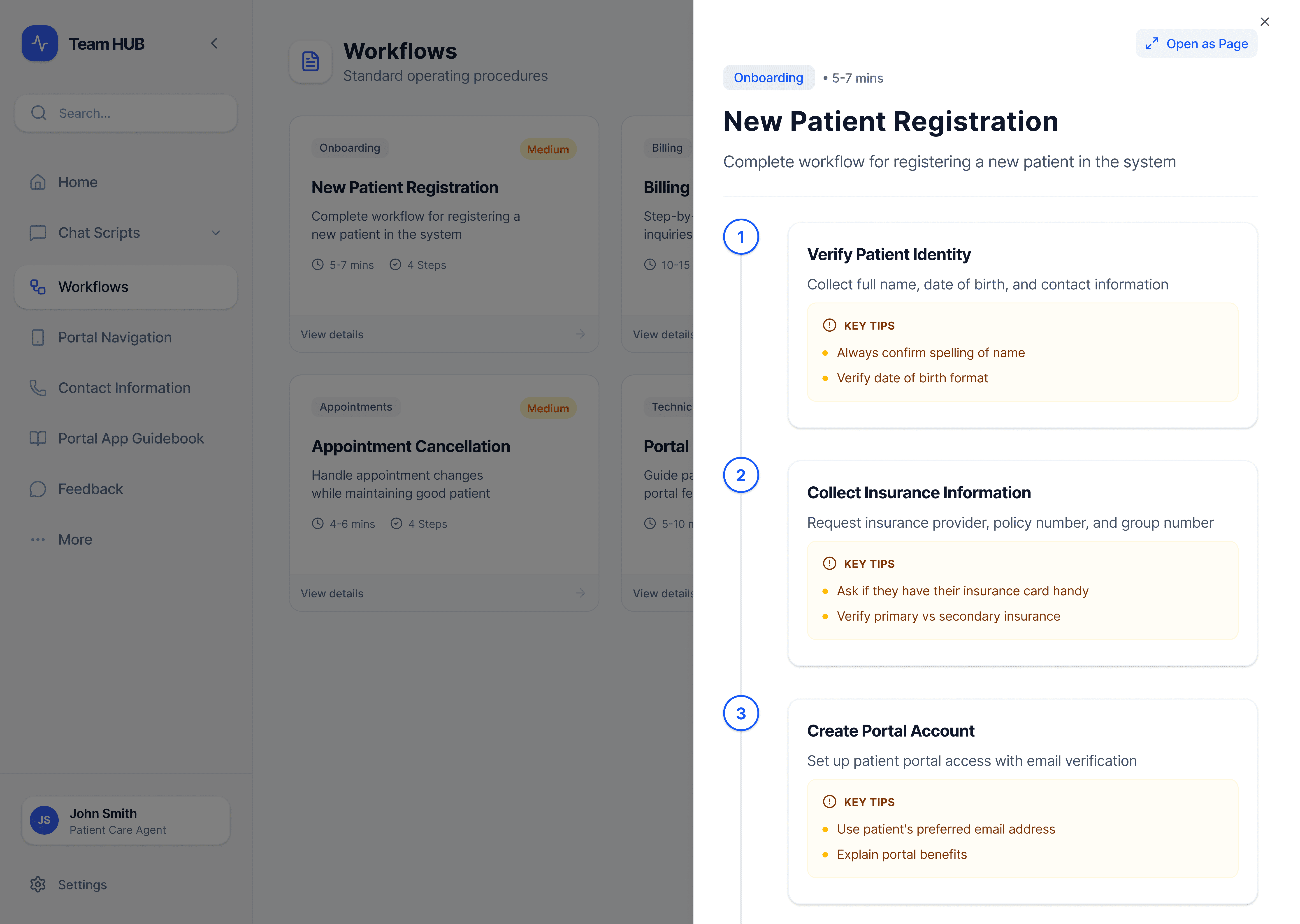 Standardized step-by-step guidance for common and complex scenarios.