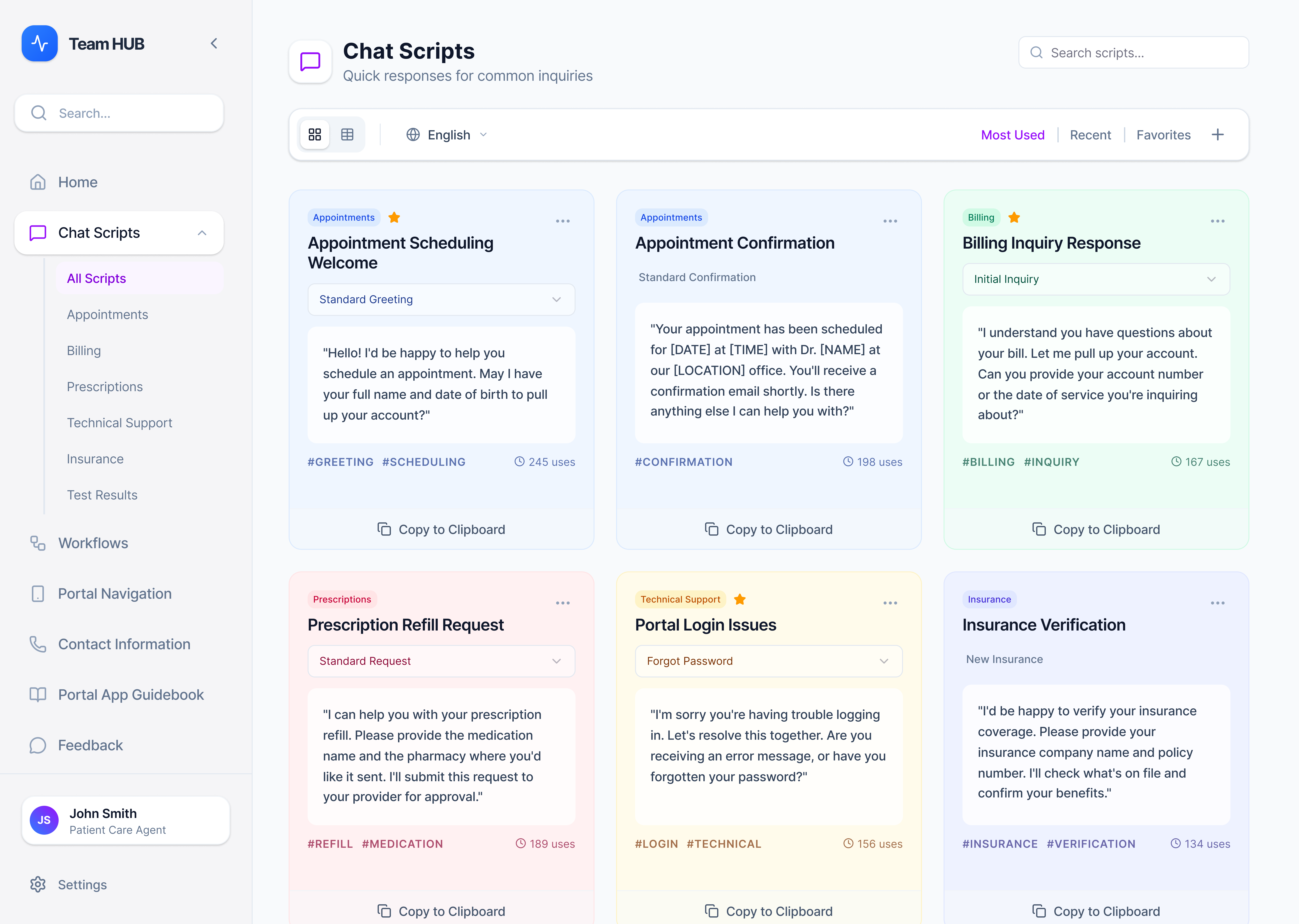 The Team HUB emerged as a centralized internal system that combined chat scripts, workflows, contact information, and navigation support into a single source of truth, designed to be used while actively chatting with patients.