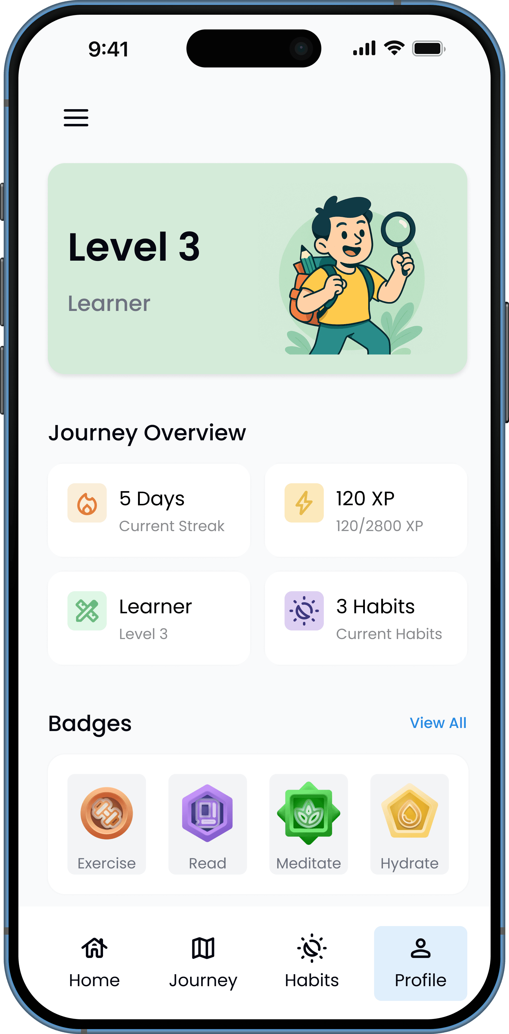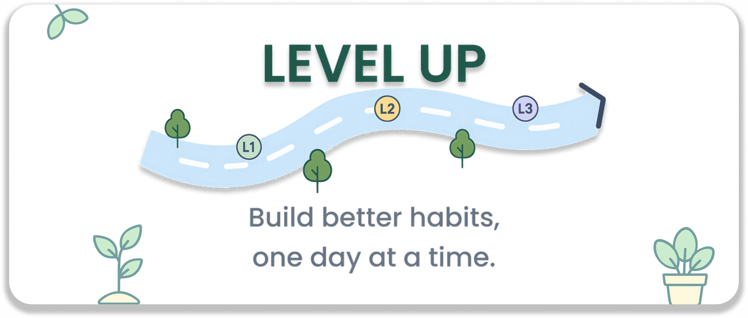 Instead of punishing missed days, Level Up celebrates progress, small wins, and long-term consistency.