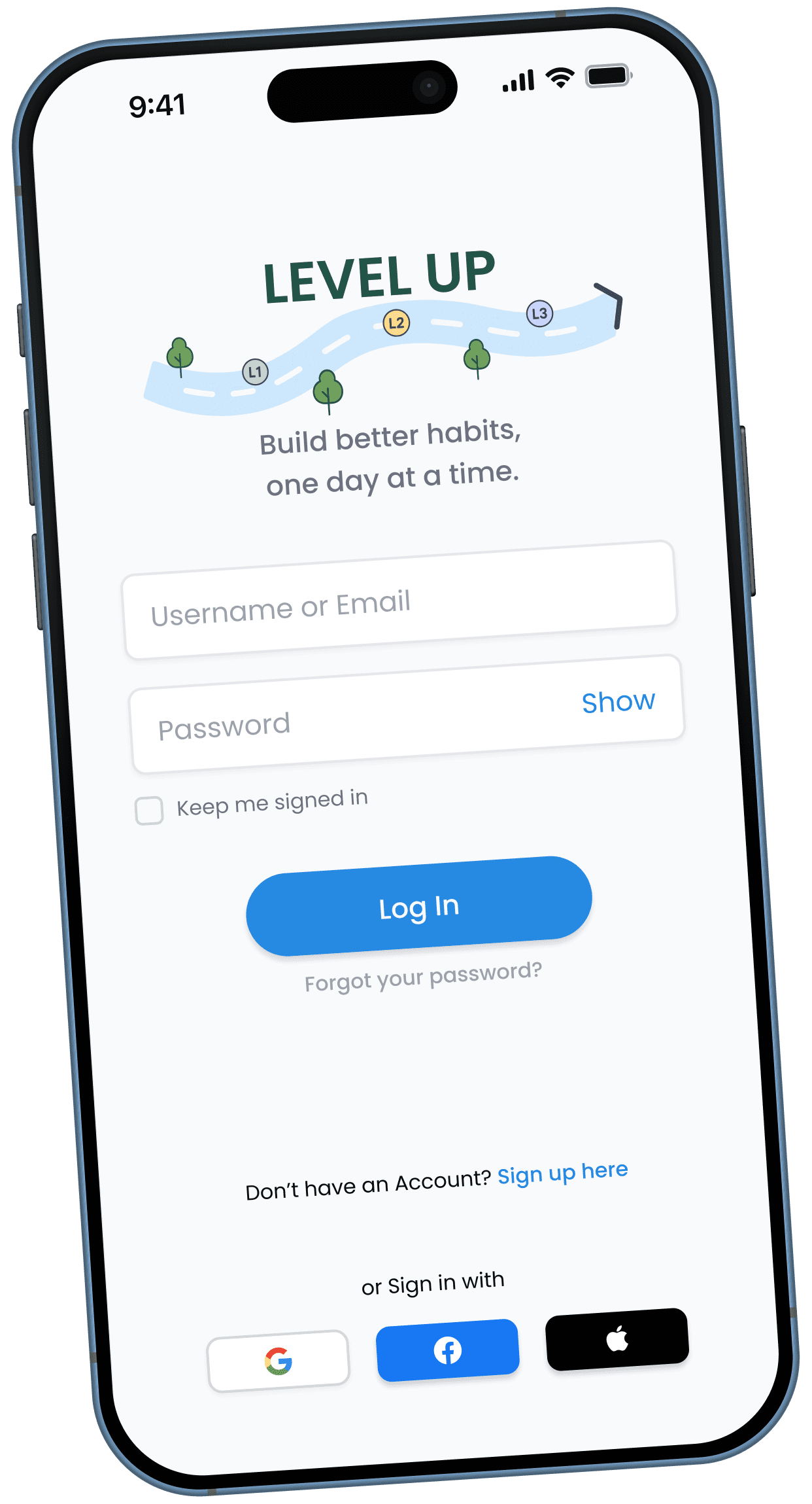 Level Up is a simple, game-inspired habit tracker designed to help users build better habits without the pressure of perfection.