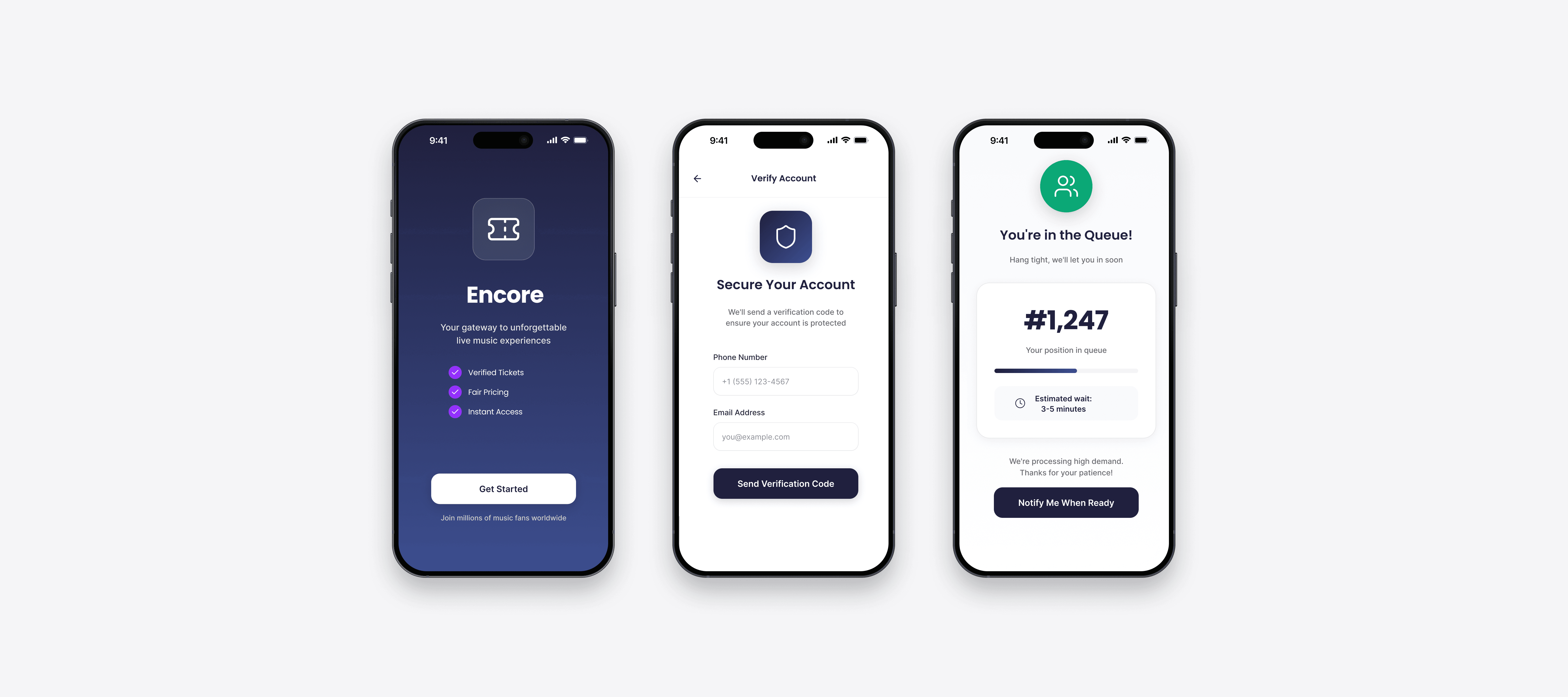 The concert ticketing system is broken. Bots and scalpers dominate sales, inflating prices and shutting out real fans. Encore reimagines the experience, putting fan protection, transparency, and trust at the center of every interaction.