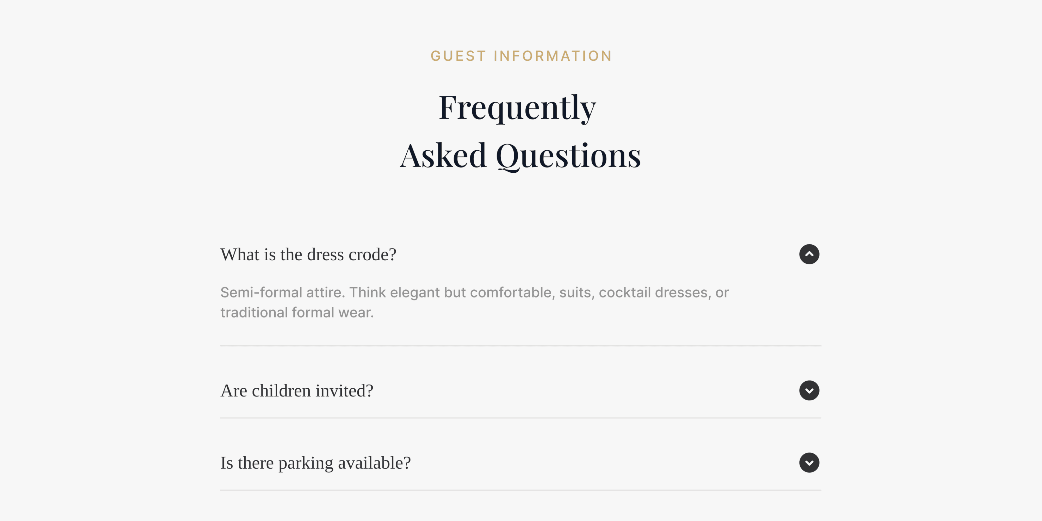 The information hierarchy on this wedding website is designed with guests in mind, focusing on their needs and experiences rather than organizational structures.